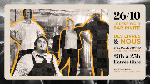 Le Réservoir bar invite le spectacle d'impro "Des livres & Nous" 📚 de La Compagnie des Indécis·es Le concept ➡️ Pour célébrer la rentrée, rien de tel que de se mettre la tête dans les bouquins ! Et c'est exactement ce que te propose la Cie. Des Indécis.es un voyage inattendu dans ton livre préféré ! En effet, durant un spectacle unique, cinq comédien.ne.s enchaîneront des impros en tous genres sur base d'extraits de livres que tu leur imposeras. Une excellente soirée en perspective ! P.S.: N'oublie pas ton livre ! 📚 ➡️Réservations : robin.fourneau@hotmail.be 👉 INFOS PRATIQUES : 📍 Lieu : Le Réservoir Bar - Rue Haute 204 - 1000 Bruxelles ⏲️Spectacle : 20h 💰 Prix : libre ➡️Réservations : robin.fourneau@hotmail.be 🍴 On vous rappelle que la cuisine du Réservoir est ouverte dès 18h, pour vous faire plaisir avant le spectacle ! La team Réservoir