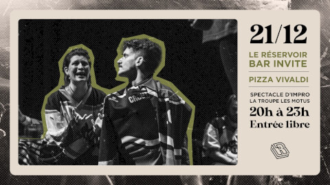 Pizza Vivaldi, spectacle improvisé et improbable 🎭 🍕 Le Réservoir bar présente la troupe d’impro théâtrale Les Motus qui présente à son tour Pizza Vivaldi. De quoi s’agit-il ? De ceci : T’est-il déjà arrivé de passer plus d’une heure sur ta plateforme de streaming préférée à chercher sans succès la série qu’il te fallait en ce moment? Ne cherche plus, Pizza Vivaldi® le fait pour toi ! Pizza Vivaldi® t’offre en un soir les quatre saisons d'une série inédite, personnalisée et tout à fait improvisée ! Il te suffit de choisir le style que tu désires, le genre et les personnages qui te font rêver, le lieu l’époque tout autre chose, et les comédien·nes font le reste, pour ton plus grand plaisir ! N’attends plus, et découvre le tout nouveau spectacle Pizza Vivaldi® (une production Les Motus) ! Décidément, le binge watching n’aura jamais été si simple ! Pizza Vivaldi®, Netflix s’en mord déjà les doigts ! Venez découvrir leur spectacle le 21 décembre à 20h, sans réservation & avec entrée libre, sortie au chapeau ! @lesmotus A bientôt, La team Réservoir