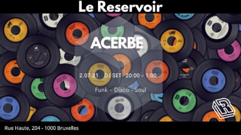 ACERBE Acerbe is a Brussels-based DJ who spins everything from old school funk and disco to tech house, acid techno and uk garage. His roots lie in his love of two strong musical currents : FUNK and PUNK. Acerbe channels their energies into a joyful mixture of grooves designed to shake the dancefloor, carefully choosing the right moment to unleash them. Come get your funky fix! Acerbe est un DJ bruxellois qui mixe tant le funk old school et le disco que la tech house, l'acid techno ou l'uk garage. Il puise son inspiration dans deux genres musicaux fort marqués : le FUNK et le PUNK. Acerbe canalise ces énergies en un mélange joyeux de tracks conçues pour chauffer le dancefloor, choisissant patiemment le moment approprié pour les déchaîner. Facebook : https://www.facebook.com/ACERBEBRUSSELS/ Mixcloud: mixcloud.com/acerbe DJ SET - 20:00 - 1:00 - Respecter les règles de distanciation sociale - Port du masque obligatoire pour tout déplacement - Limiter vos déplacements dans l’établissement - Pas de dancing