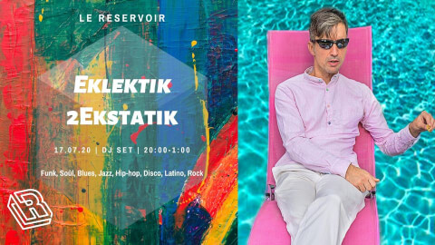 L’éclectisme est l’ADN de son approche musicale. Le dance floor est central dans cette envie forte de partager sa passion et faire danser les gens. DJ SET - 20:00 - 1:00 Mixcloud : https://www.mixcloud.com/ekklektik2ekstatik/ - Respecter les règles de distanciation sociale - Port du masque obligatoire pour tout déplacement - Limiter vos déplacements dans l’établissement - Pas de dancing - Capacité maximum de 125 personnes