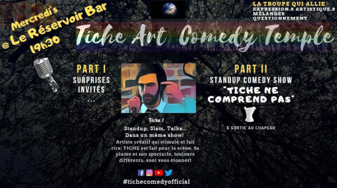 #tichecomedyofficial 📲 Follow Share 🕡18:30-22:00 💰Cash Programme : 🔥18:30 inscription & OpenMic : exprimez-vous! 🔥20:30 Standup & Comedy Show: @Tiche Comedy, @Mathieu Boumalosaurus, @Kiriakos Entrée gratuite - Sortie généreuse au chapeau. Le Tiche Comedy Temple: 🥳Votre show varié et inspirant qui plait à un public large 🙂 Car c'est cela, l'Art: le partage! Dérision, expression, questions, fruit d'un mélange en évolution... Venez et revenez: rires, surprises et inspiration au rdv toujours différent. Line-up: TBA 🎭 L'organisation: 🚩Jeune comédien, Tiche arrive sur les scènes belges en 2019, joue son 1er rôdage de one man show en 6 mois, s'exporte, et fonde en 2020 le Comedy Temple pour stimuler le mélange, l'expression et l'esprit critique. 🚩Espace ouvert en 2019, @Le Réservoir bar est votre parfait lieu de rencontre entre artistes et amis (le reste on ne veut pas savoir), où passer un bon moment.